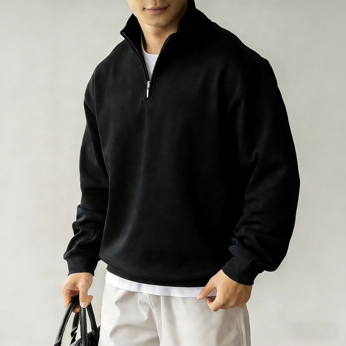 ANYOU 남성 빅사이즈 오버핏 맨투맨 캐주얼 두꺼운 반집업 맨투맨