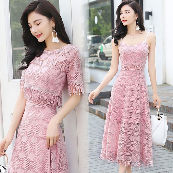 셀럽당 여성 원피스 여름 레이스 미디 나시 스커트 상의 투피스 S02656