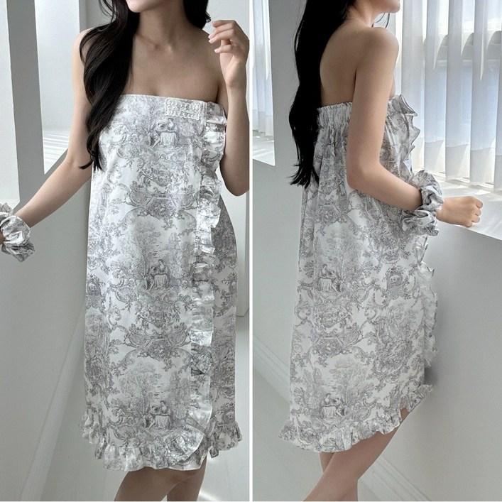 여성 샤워가운 골프 라운딩 목욕 호텔 여행 샤워랩 면실크 트왈드주이 고급원단 국내제작