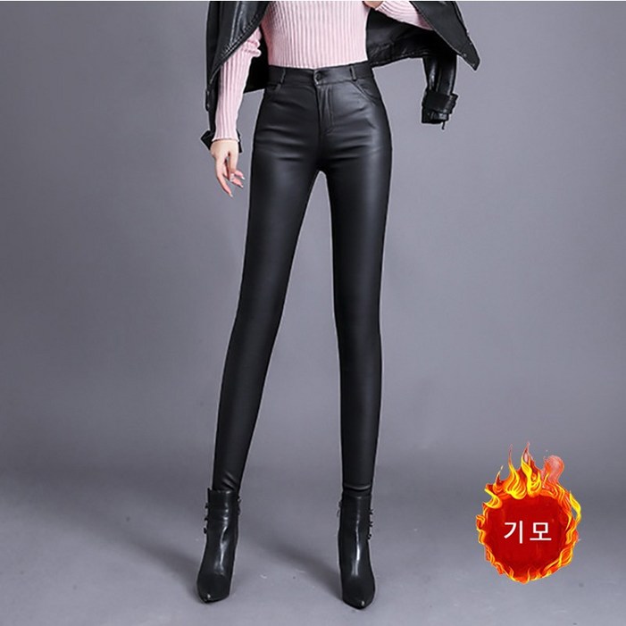 슬림소녀 여성 가을겨울 슬림핏 무광택 기모 스키니 가죽 바지